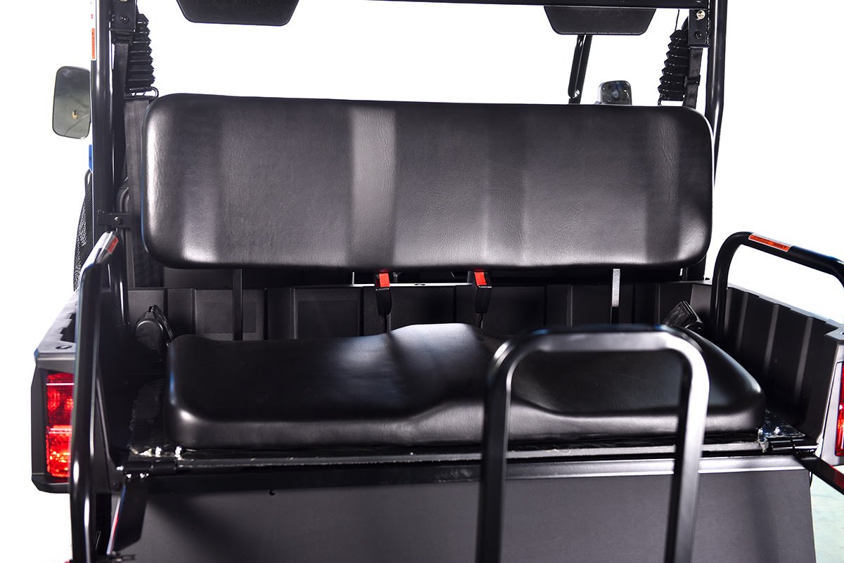 Enhance your outdoor experience with the Crossfire LH200 Gas Golf Cart. Powered by a 177cc 12hp fuel injected engine, this vehicle boasts an automatic transmission with reverse and four-wheel hydraulic disc brakes for optimal control. With deluxe alloy wheels, all-terrain tires, and a dump bed, this UTV is ready for any adventure.
